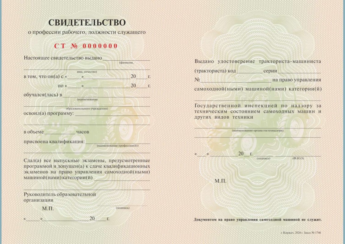Свидетельство о профессии (тракторист)