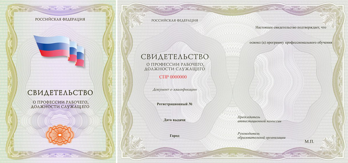 Образец свидетельства о профессии рабочего, должности служащего